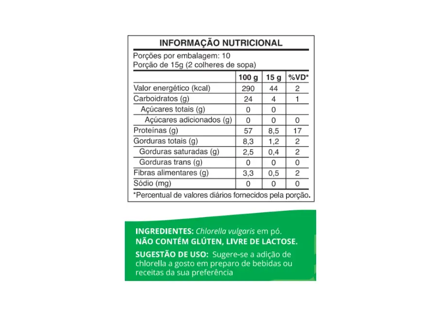 Rica em proteínas vegetais, clorofila e minerais naturais