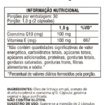 Cada dose (2 cápsulas) contém 100 mg de Coenzima Q10 e 100 mg de Vitamina E