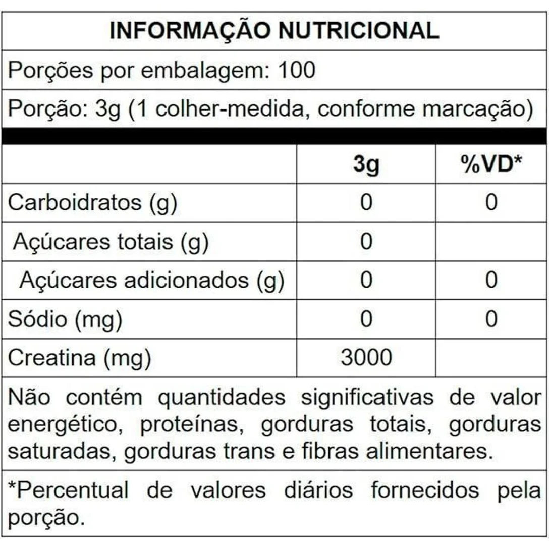 Cada dose fornece 3g de creatina pura, essencial para o aumento de energia (ATP) durante os exercícios de alta intensidade, favorecendo o crescimento da massa magra, melhora do desempenho físico e otimização da recuperação muscular.