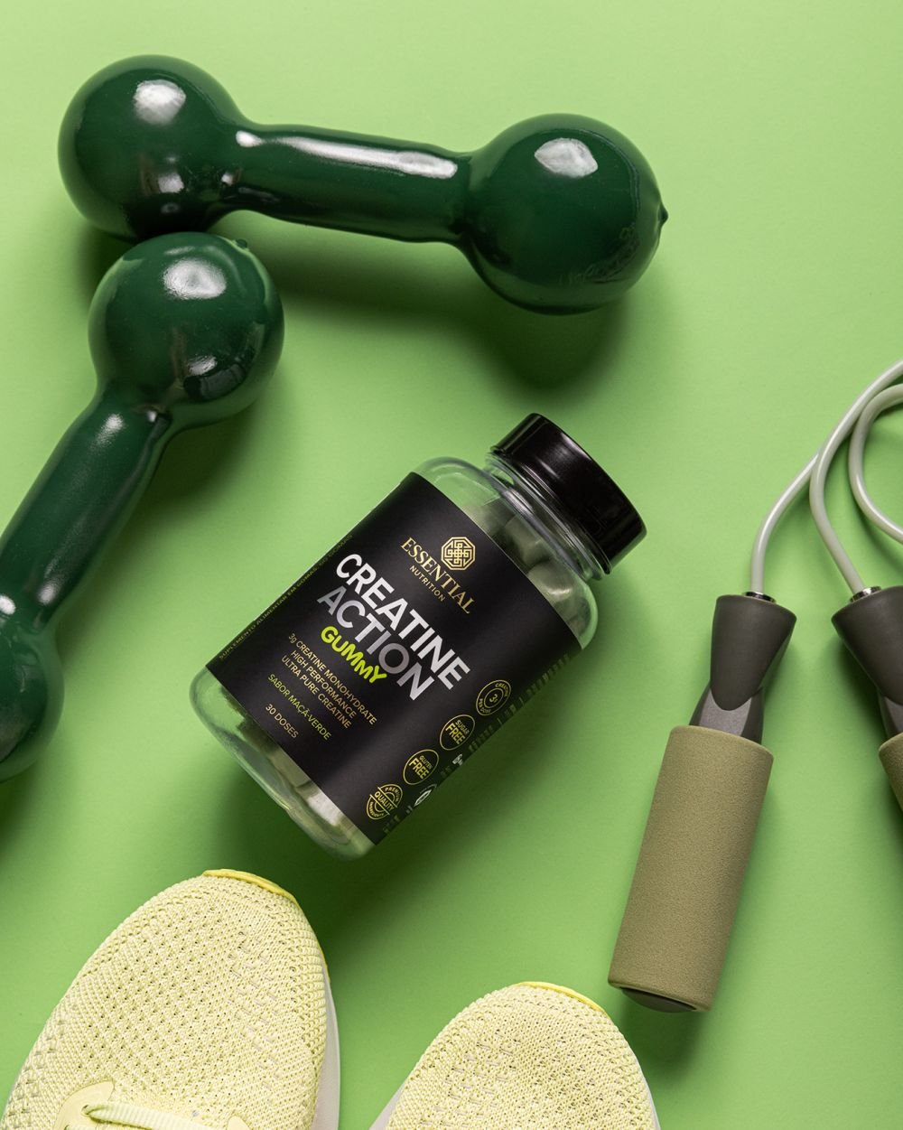 ✨ Creatine Action Gummy Maça Verde 60 gomas – Essential Nutrition