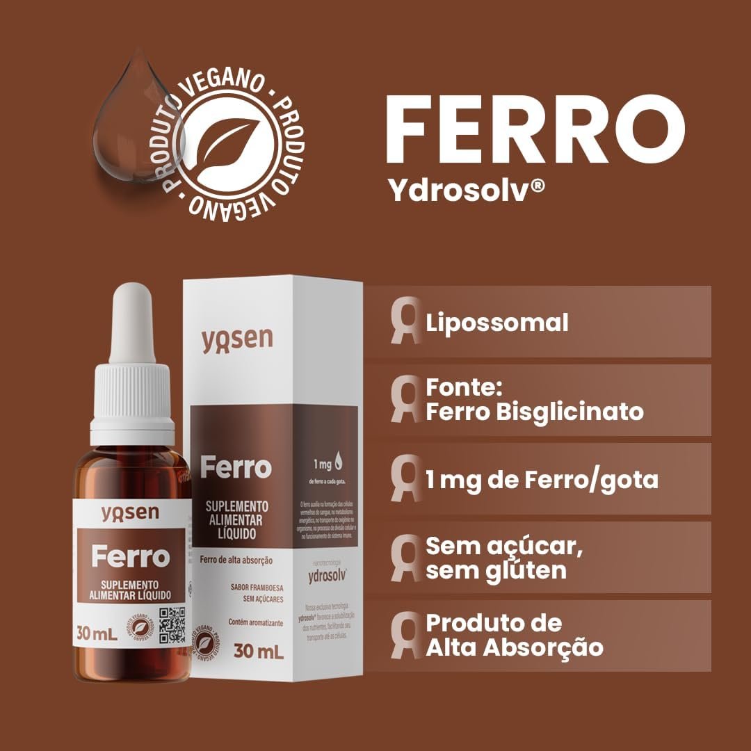 O Ferro Hydrosolv Yosen é um suplemento líquido desenvolvido com tecnologia Hydrosolv, que garante alta absorção e biodisponibilidade superior às formas em cápsulas ou comprimidos. Sua fórmula líquida permite uma dosagem prática e personalizada, facilitando o consumo diário e promovendo manutenção de níveis saudáveis de ferro, prevenção de anemia e suporte à energia e vitalidade.