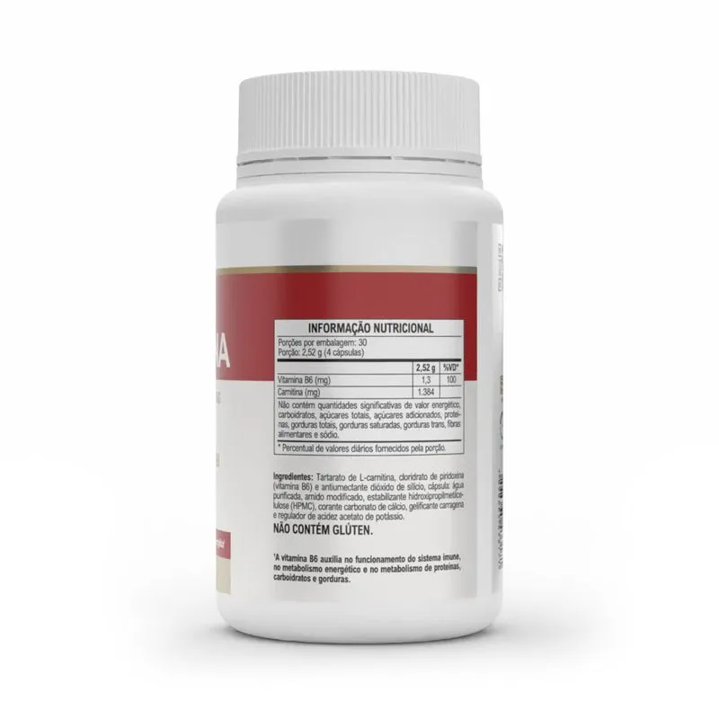 Suplemento formulado com L-Carnitina Tartarato e vitamina B6, desenvolvido com tecnologia de alta absorção que potencializa o uso das gorduras como fonte de energia. Auxilia na redução de gordura corporal, melhora o desempenho físico e favorece o metabolismo energético e muscular.
