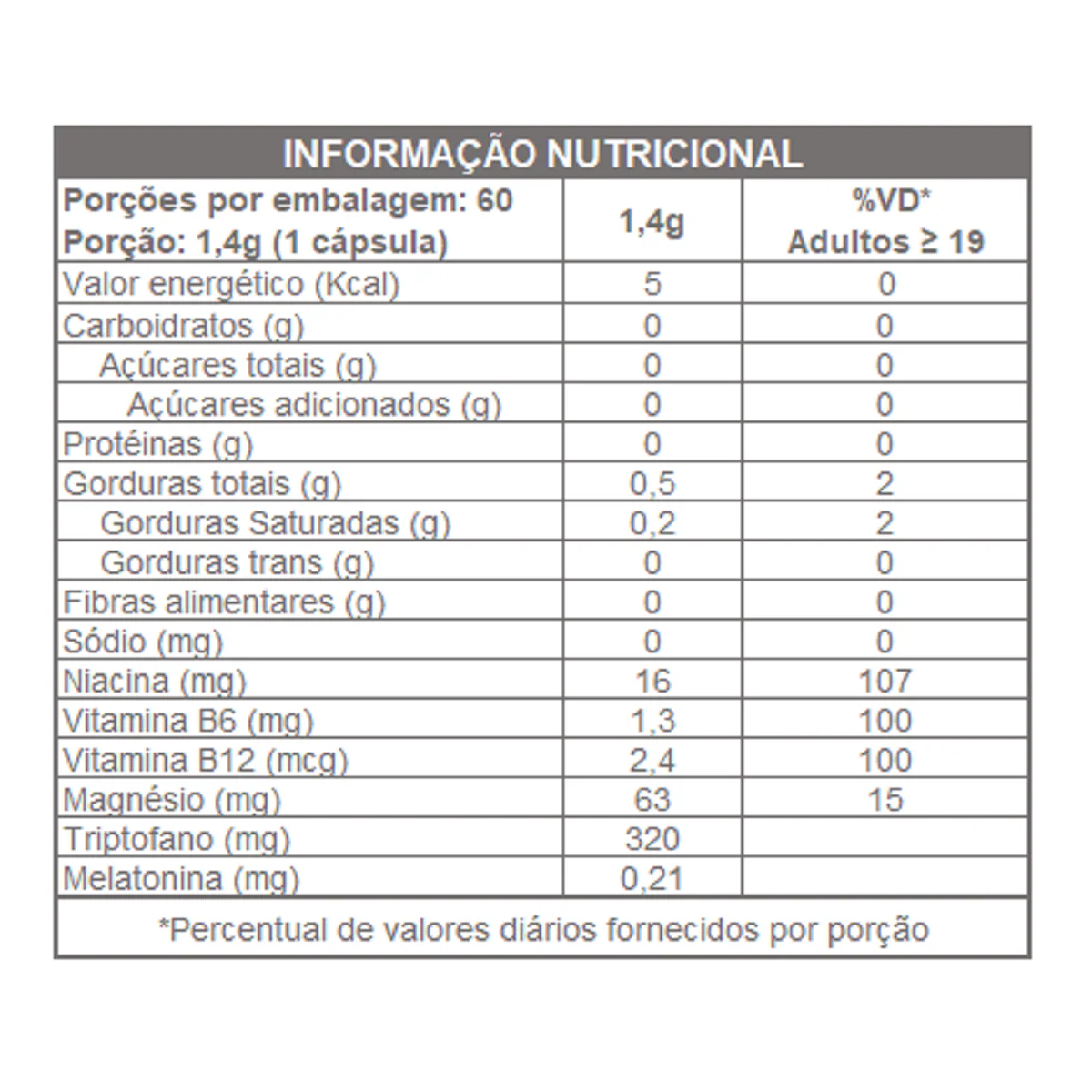 Com 1400mg por cápsula, o produto promove um descanso profundo e restaurador, contribuindo também para o equilíbrio emocional, função cognitiva e fortalecimento do sistema imunológico.