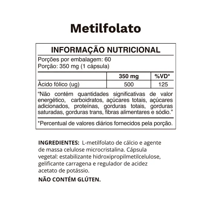 5-Metiltetrahidrofolato (Metilfolato), cápsula vegetal e excipientes naturais.