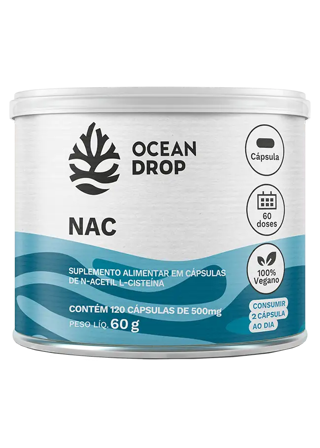 O NAC Ocean Drop é um suplemento em cápsulas que contém N-Acetilcisteína (NAC), um precursor do antioxidante glutationa, reconhecido por seu papel na neutralização de radicais livres, proteção celular e apoio ao fígado e sistema imunológico. Sua ação ajuda a reduzir estresse oxidativo, proteger órgãos e manter o bem-estar geral.