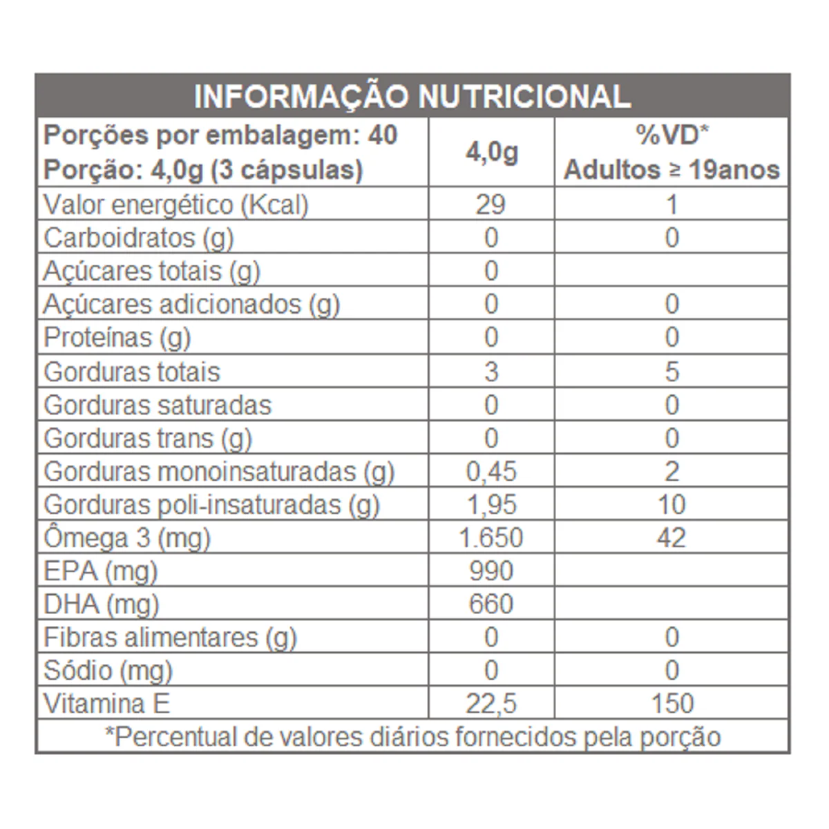 Cada cápsula fornece uma dose potente de Ômega 3 com altos níveis de pureza e absorção, livre de metais pesados e impurezas, garantindo segurança e eficácia em seu uso diário.