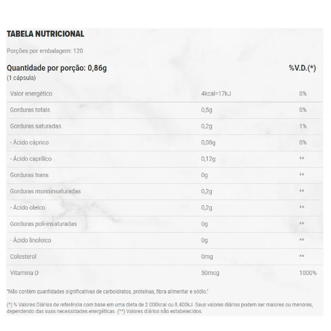 • Pureza e biodisponibilidade elevadas, com vitamina D3 na forma mais absorvível pelo organismo.