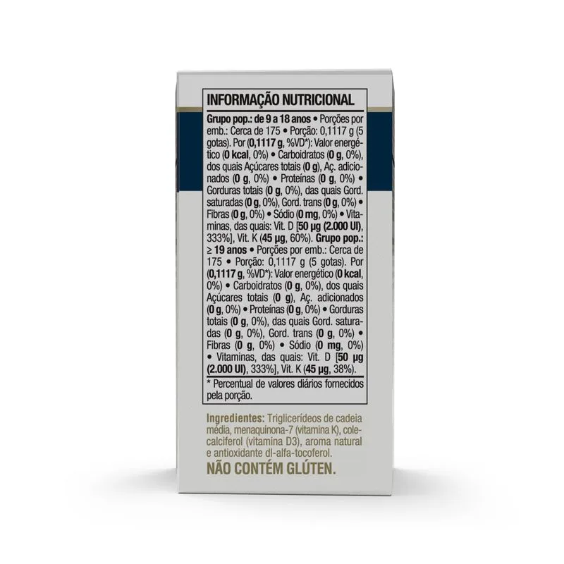 Cada porção fornece vitamina D3 e vitamina K2 em concentrações equilibradas, com óleo veicular de alta qualidade e aroma natural de menta.